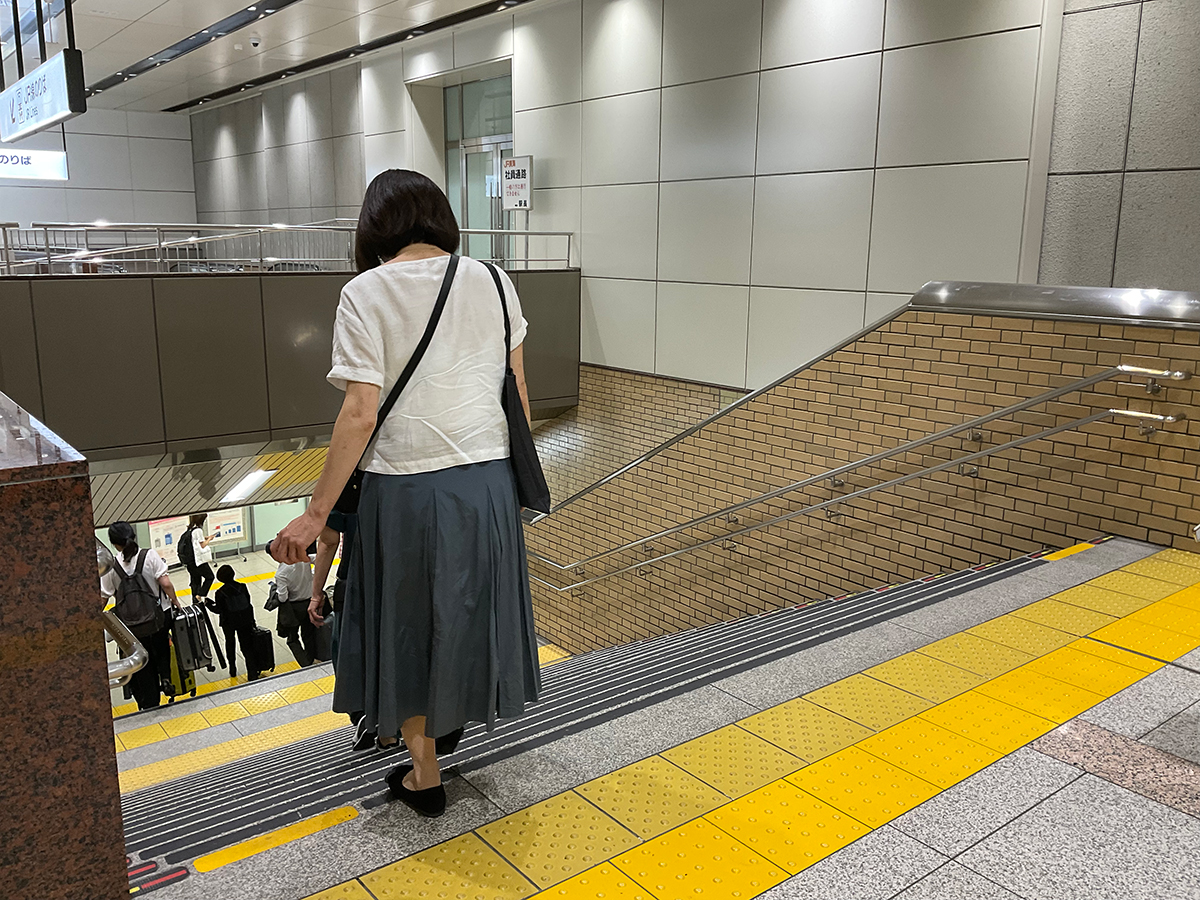 ホームからコンコースへはエスカレーターか階段で下ります。ここで一呼吸。
