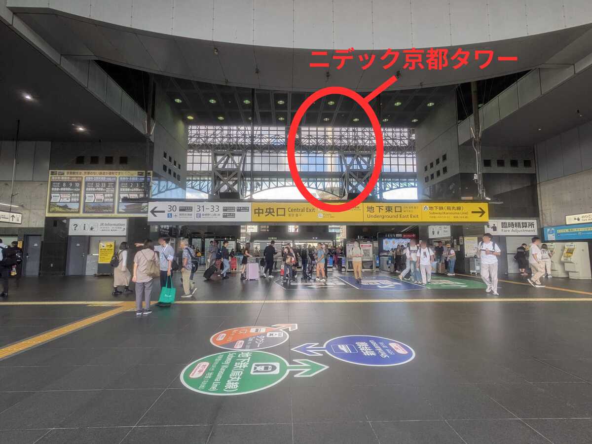 【中央口に近づくと、奥のガラス越しにニデック京都タワーが!】