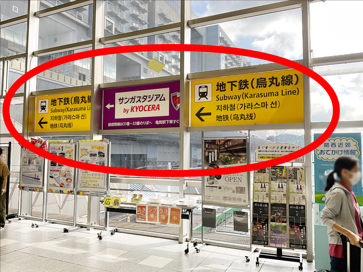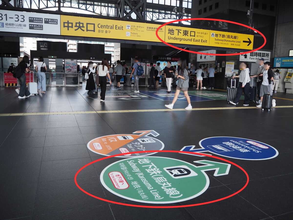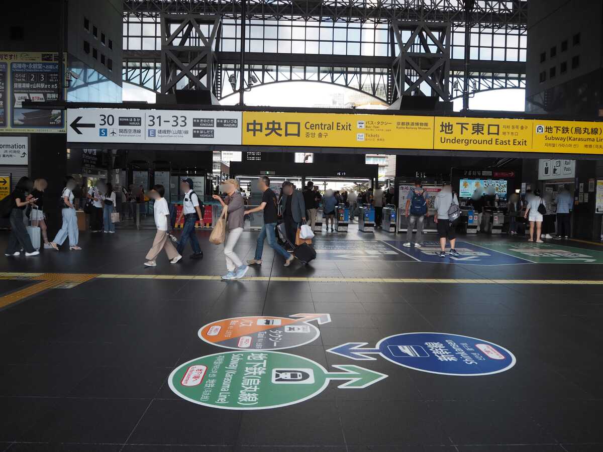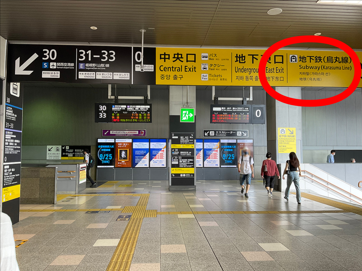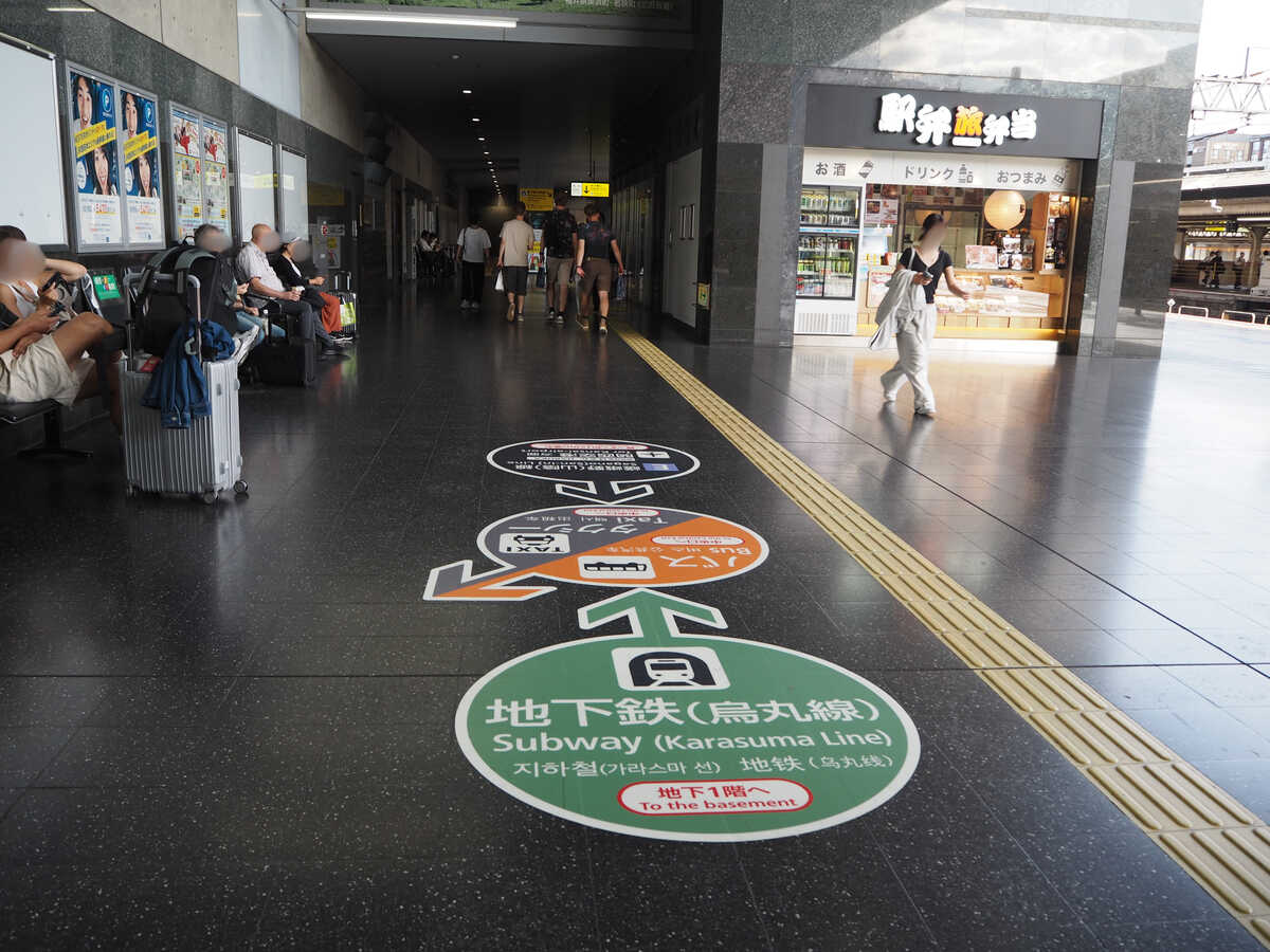 新幹線から地下鉄烏丸線への乗り換えはさまざまなルートがありますが、比較的わかりやすい3つのルートを紹介します。