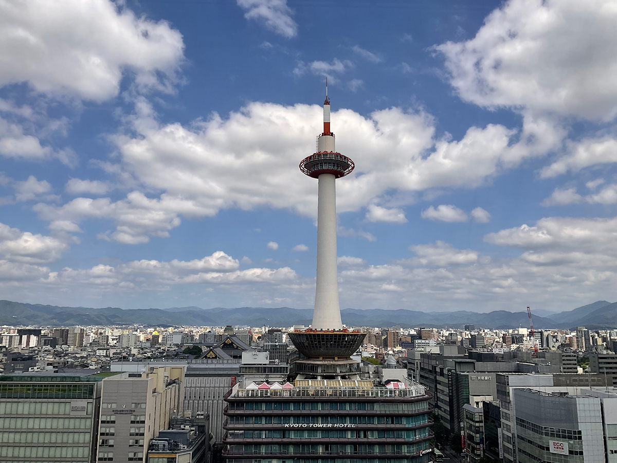 東京・名古屋方面から京都駅へ着き、ホームへ降り立ちます。「きょうと、きょうと」というアナウンスが響く中、眼前には京の街並みが。