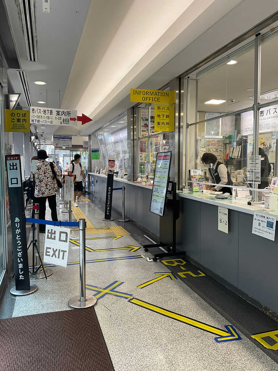 バス乗り場の総合案内図の近くのバスチケットセンター内には市バス・地下鉄の案内所もあります。どの路線に乗ればいいのか迷ったらここで尋ねてみましょう。