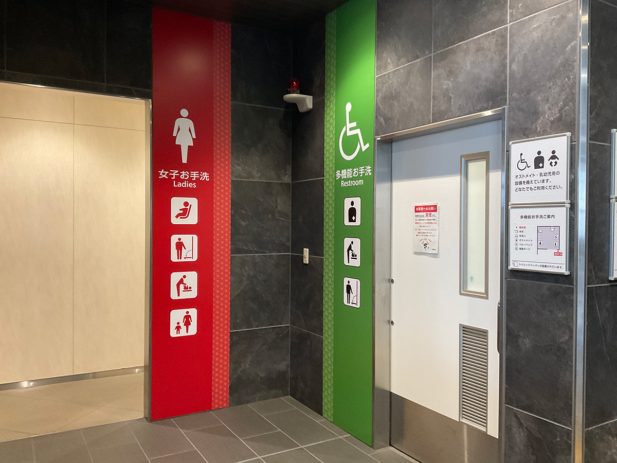 「JRのりかえ口(中央のりかえ口)」を出たところには、エスカレーターやエレベーター、多機能トイレも完備されているので、ご高齢の方や子ども連れのファミリーにはこちらのルートがオススメです。
