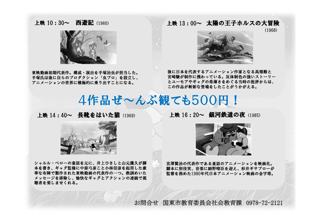 フィルムで楽しむ懐かしのアニメ映画鑑賞会をアストくにさきで開催します。有名なアニメーション映画4作品を上映します。