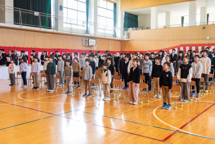 式典では、私財を投じて同校の創立に尽力するなど上越の教育に貢献した地元出身の渡部健蔵氏の功績や学校行事など、1年をかけて撮りためている閉校記念映像の一部が披露された。最後に児童や出席者で校歌を合唱し、子どもたちを育み続けた学校に感謝した。