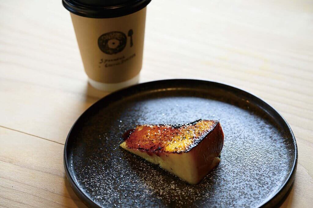卵の香りが豊かなブリュレチーズケーキ(550円)と珈琲(ホット450円)。
