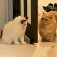 性格が違う猫ちゃんが並んでお座りしていたため、交互になでなでしてみると…?まるで両極端な猫ちゃんたちの反応が、注目を集めています。