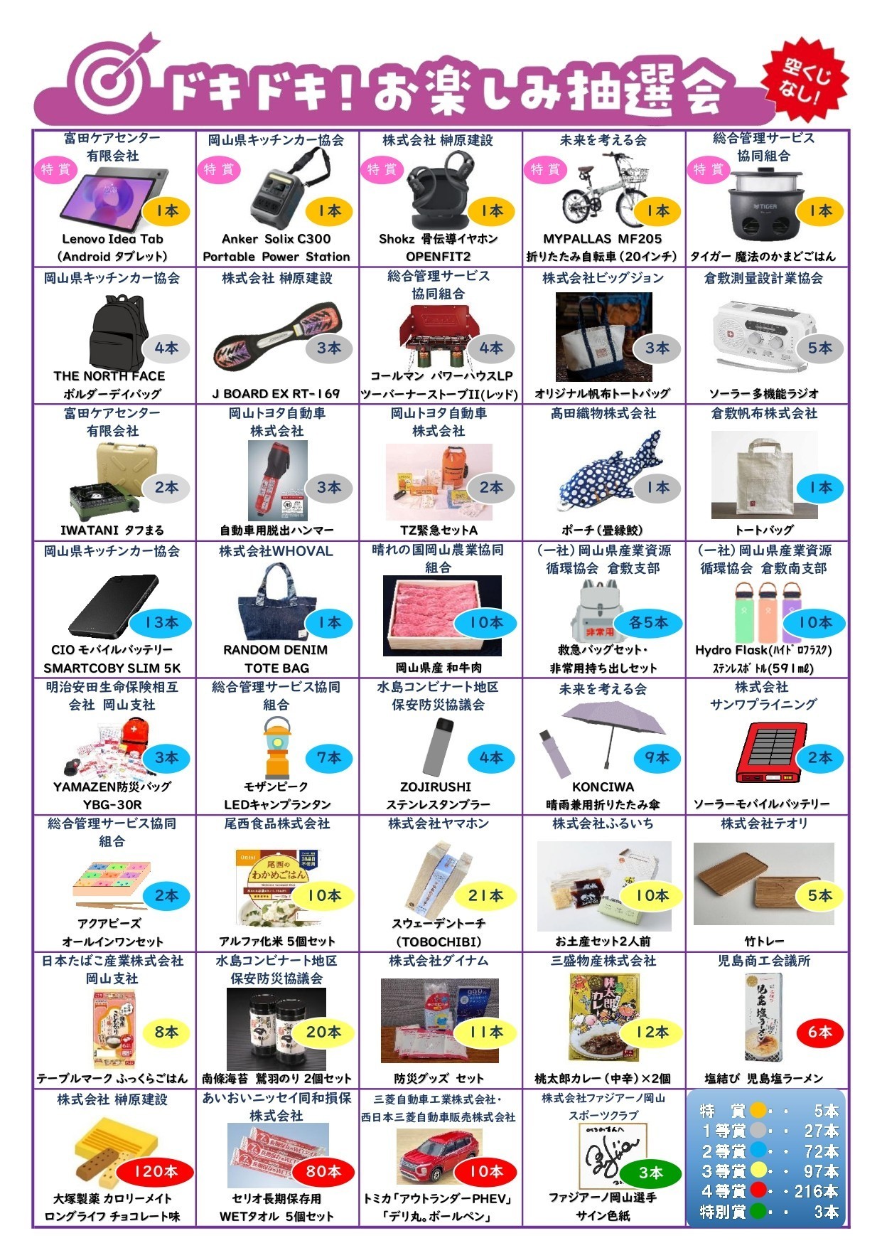 また、児島ならではの点としては、例年通りおこなうお楽しみ抽選会で、児島の地元企業の協賛による景品もご用意しています。
