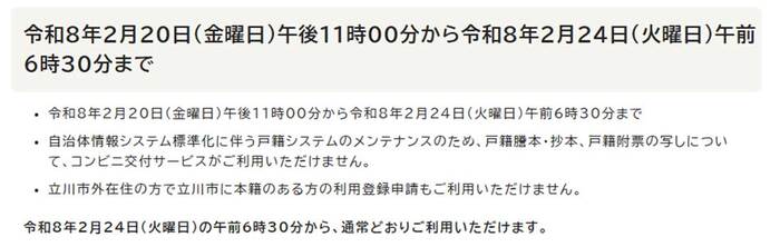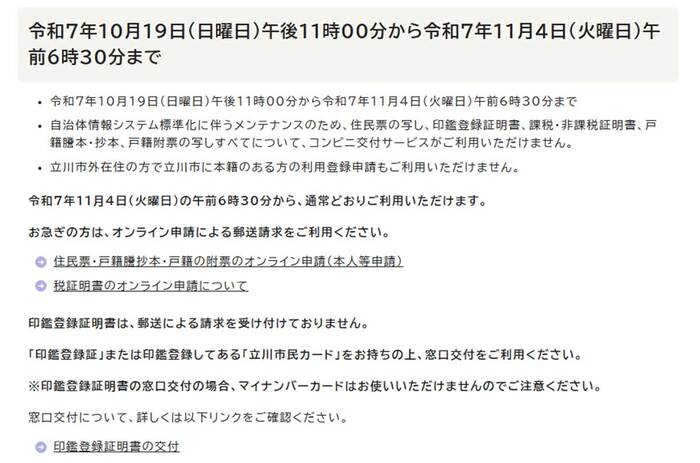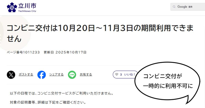 住民票などが必要な時はご注意を!2025年10月19日(日)~11月4日(火)と2026年2月20日(金)~2月24日(火)の期間はコンビニ交付が利用不可に