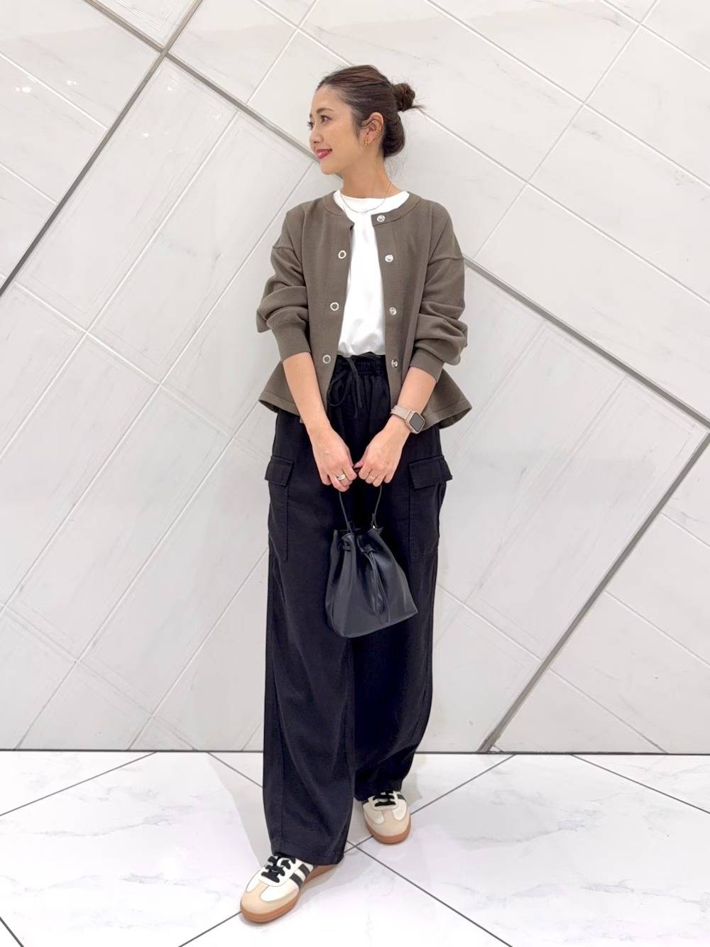 長袖カーディガンとロングスカートの組み合わせは10月の気候にピッタリで、快適に過ごせるのが嬉しいですよね♪
