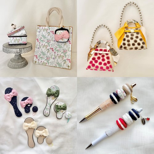 既製品の雑貨に布や飾りを貼るだけでつくり上げるカルトナージュ風インテリアデコレーション“カフェミナージュ”。針を使わず簡単に楽しめるハンドクラフトで、日常使いの雑貨を素敵に彩ってくれるアイテムがそろいます。連日日替わりで開催されるワークショップもお見逃しなく。