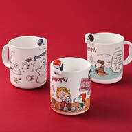 陶器製のマグカップで、高級感たっぷりなのもうれしいポイント。3種類展開で、側面のイラストはもちろん、カップの縁についたスヌーピーのフィギュアも異なります。