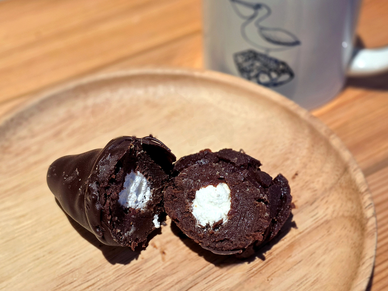 パリッとしたチョココーティングの中は、しっとり濃厚なガトーショコラ。