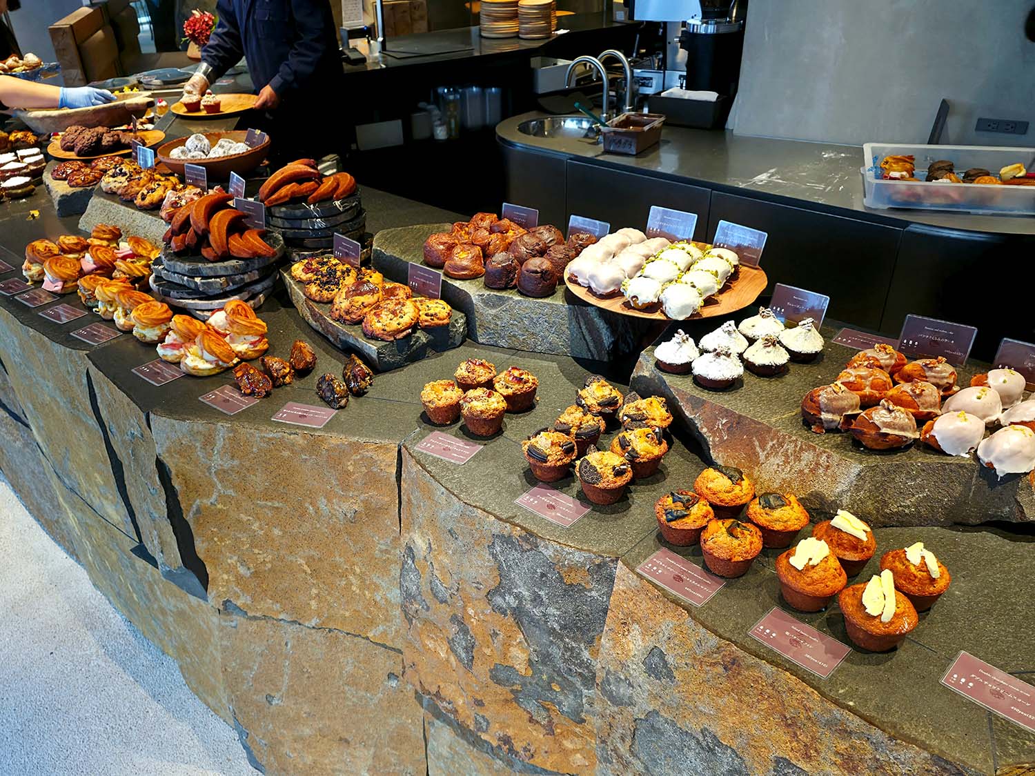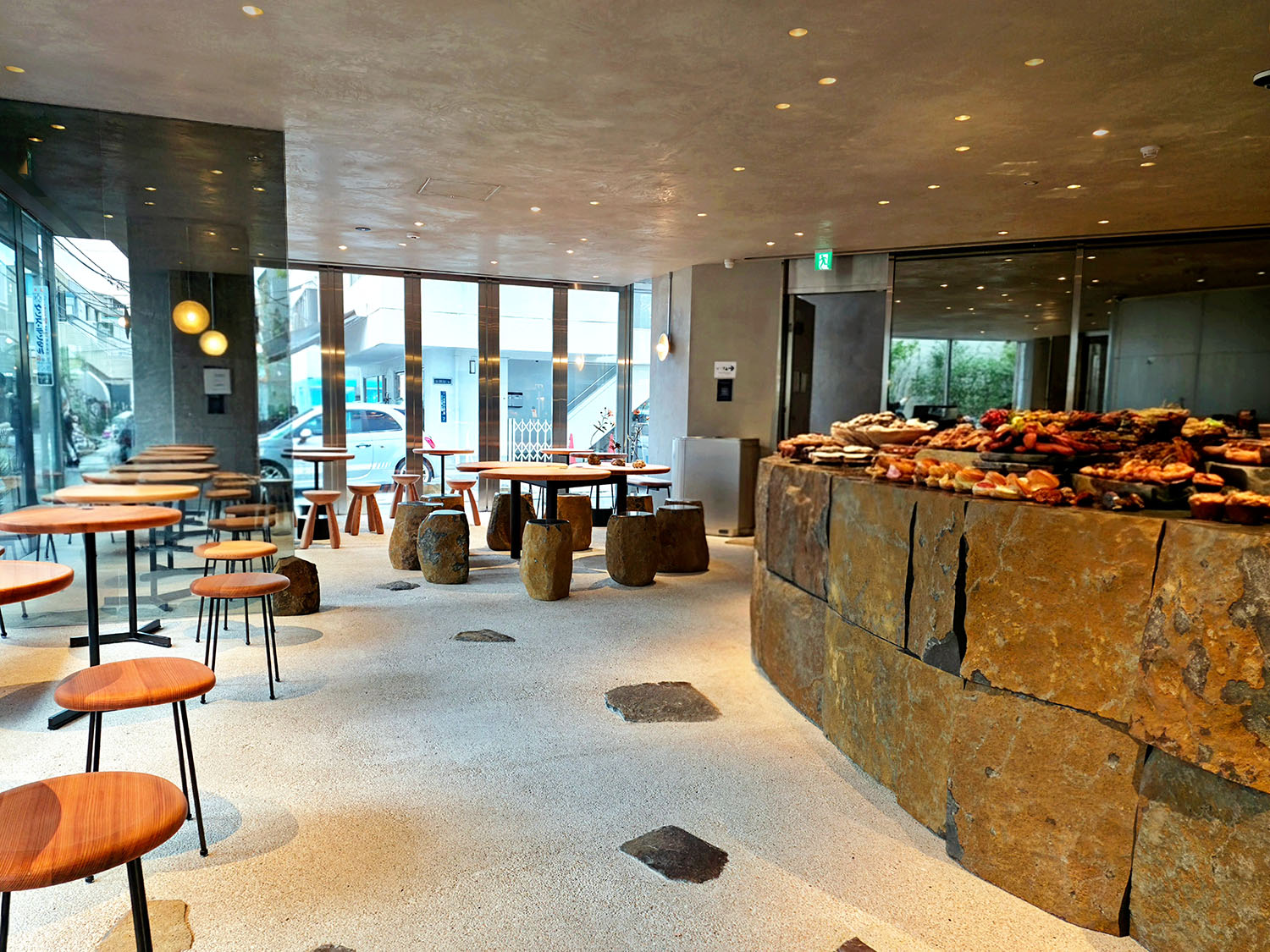 1号店のオープン以来“石の町にある小さなパン屋さん”をコンセプトとするアマムダコタンの世界観を引き継いだ店内。