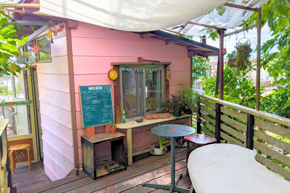 タープが配置されたテラス席も。席数が少ないので予約必須です。