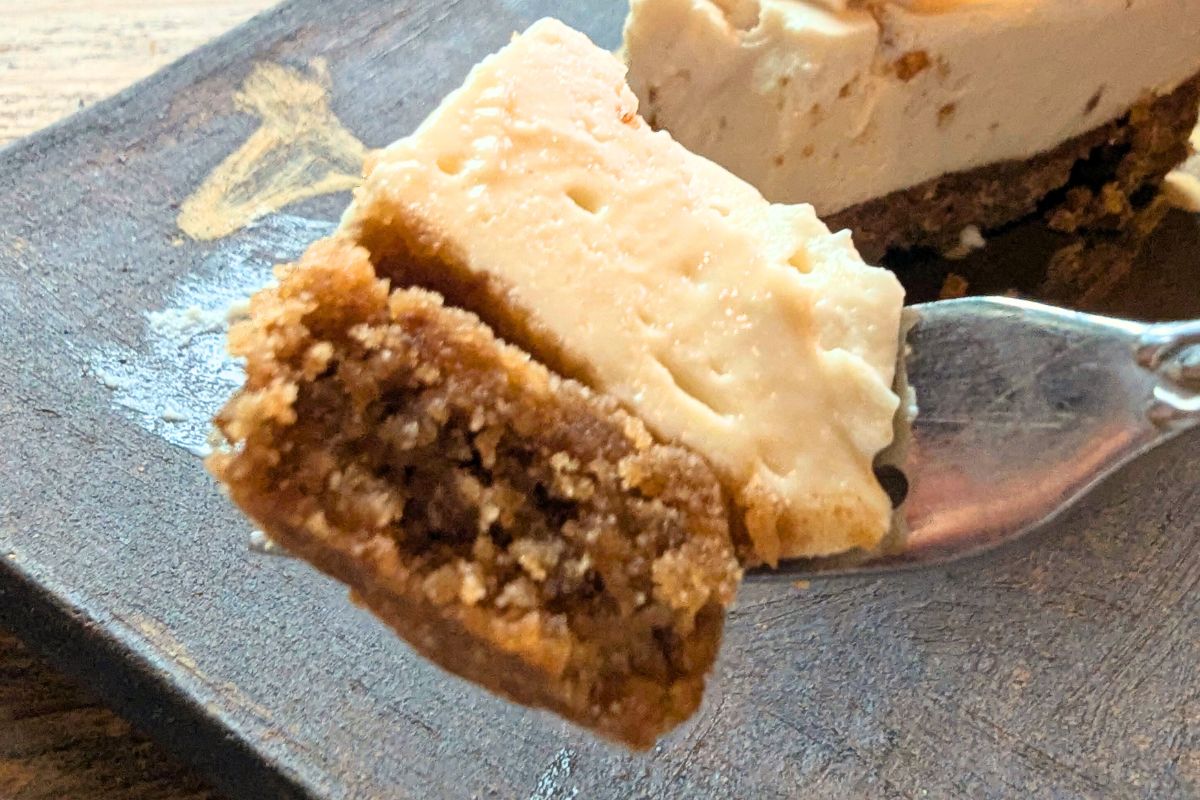 この時は、ライチのソイヨーグルトレアチーズタルトでした。沖縄県産の貴重なライチを贅沢に使った、出会えたら幸運なタルトです。 ザクザクとした食感のタルト生地は玄米粉で作られており、その塩気が上のクリームの甘さを引き立てます。