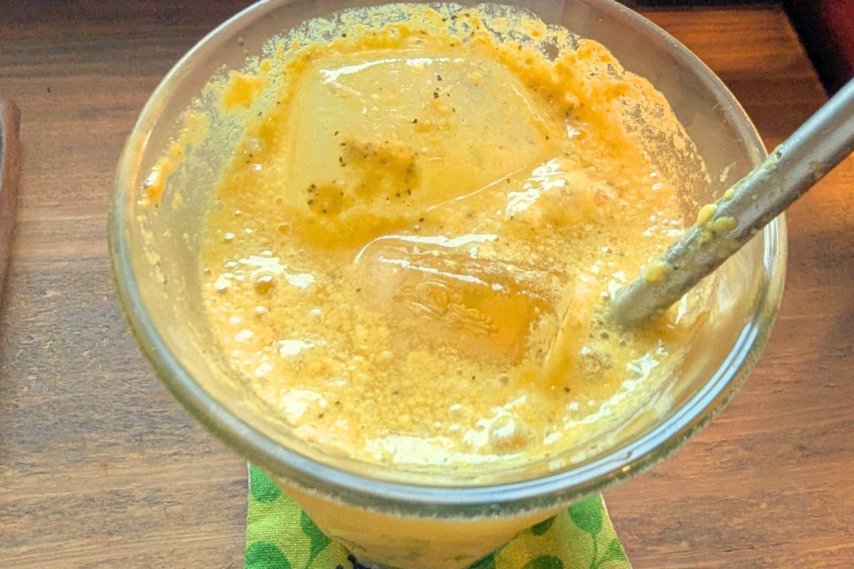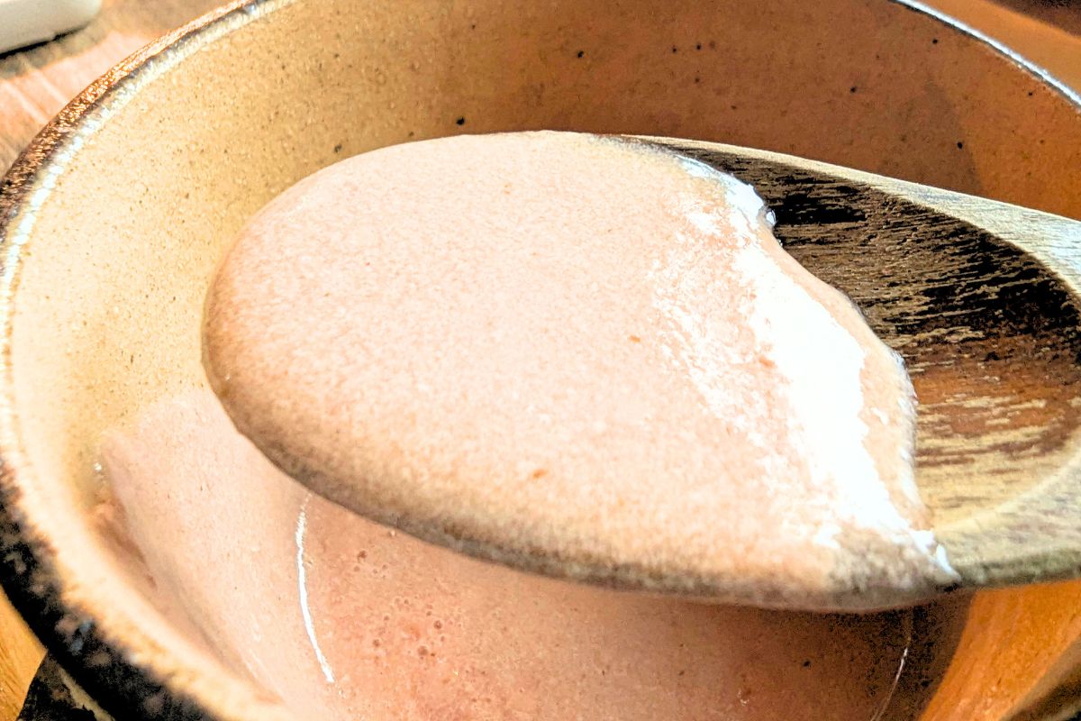ドリンクも季節の素材が活かされています。 訪問時にいただいたのは、パッションフルーツと梅ジャムのソーダ。 自家製の青梅ジャムが、パッションフルーツのトロピカルな酸味にまろやかな甘みを加え、完璧なバランスを生み出しています。 夏にこそ味わいたい、爽快感あふれる一杯です。