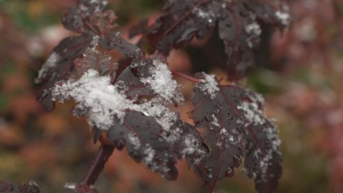 今シーズン一番の寒さ 赤倉やいもり池周辺で初雪