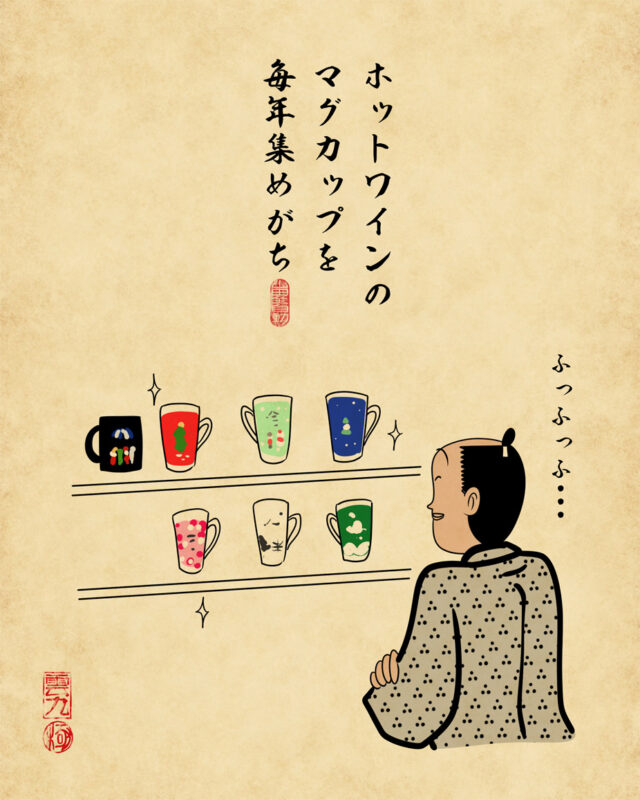 ホットワインやホットチョコレートを頼むと、その年のオリジナルマグが付いてくるので、つい「今年の柄はどんな感じ?」とチェックしたくなります。