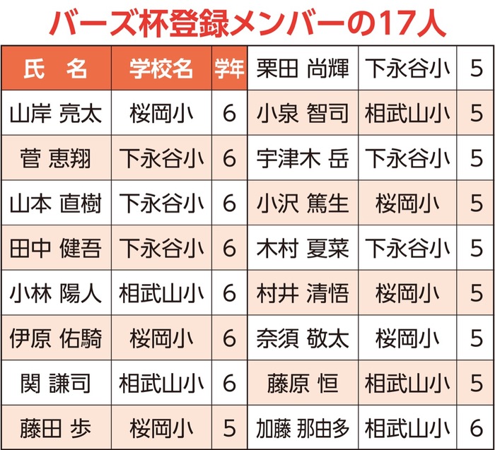 最終回は小林陽人副主将(相武山小・6年)がしっかり相手打線を抑え1点差ゲームをものにした。準決勝は梅林杉田(磯子区)と対戦し、5―2のスコアで決勝へ。10月19日、港南台南公園少年野球場で開催された最終戦の相手は港南西洗ヤングスターズ(港南区)。3回に逆転すると、5回にも追加点をあげ6―2で勝利した。