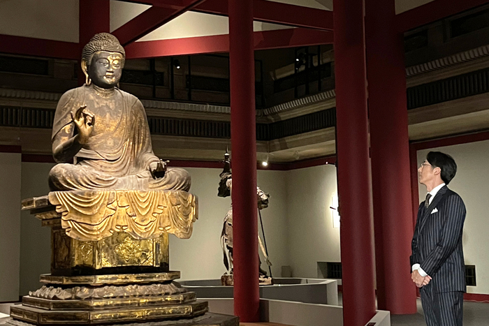 もしも俳優として運慶を演じるとしたら、という質問には「役をいただけることがありましたら掘り下げたいと思います。運慶は、混乱の時代に人々の願いを像に昇華する、優しさや繊細さや力強さがあったのだと想像しています。宗教性を超えた普遍的なものを表現したいですね」と熱く主張。これから来場するお客様へのメッセージとしては、「通常は同じ空間にない仏様がいらっしゃる、またとない機会。是非皆様にお越しいただき、凝縮された空間を感じていただきたいですね」とし、本展にかける想いを語った。