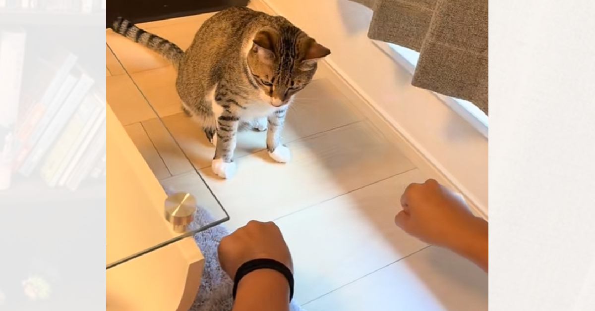 TikTokアカウント「ノモだもの。」に投稿されたのは、飼い主さんの左右どちらの手に「当たり」が入っているかを、猫のノモくんが当てるクイズをした時の様子です。