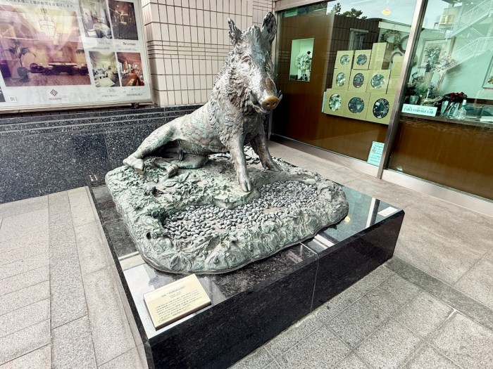 ホテル・ザ・マンハッタンの入口に鎮座する「ポルチェリーノ(イノシシ像)」は、有名な彫刻家によって3体だけ制作され、その1つはフィレンツェの広場にあるという。フィレンツェでは「鼻をなでると幸運に恵まれる」と言い伝えられているらしく、一応なでておいた。