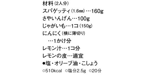 【野菜たっぷり! 技ありパスタ】いんげんとじゃがいものレモンオイルパスタ