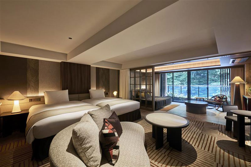 「グランディスタイル旧軽井沢 ホテル&リゾート」は、全室50㎡以上の広さでインナーバルコニーを備えたしたラグジュアリータイプの客室、さらにはサウナ付きの温泉大浴場を完備。