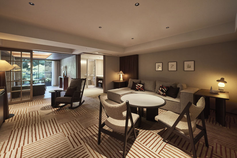 部屋面積は平均約80㎡、インナーバルコニーも完備された解放感のある設計。旧軽井沢銀座通り側からは歴史感じる街並みを臨めるほか、ショー通り側は木漏れ日差す穏やかな時間、矢ヶ崎川を望む部屋なら川のせせらぎや鳥のさえずりを感じ、上層階では雄大な浅間山の景色を望めるなど、部屋のタイプごとに異なる魅力を体感できます。