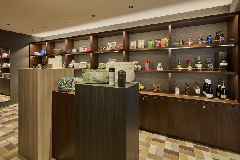 オリジナルのTシャツやお土産に加え、スナックやドリンクなども用意。