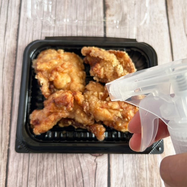 唐揚げや天ぷらは、霧吹きで軽く水を吹きかけて!