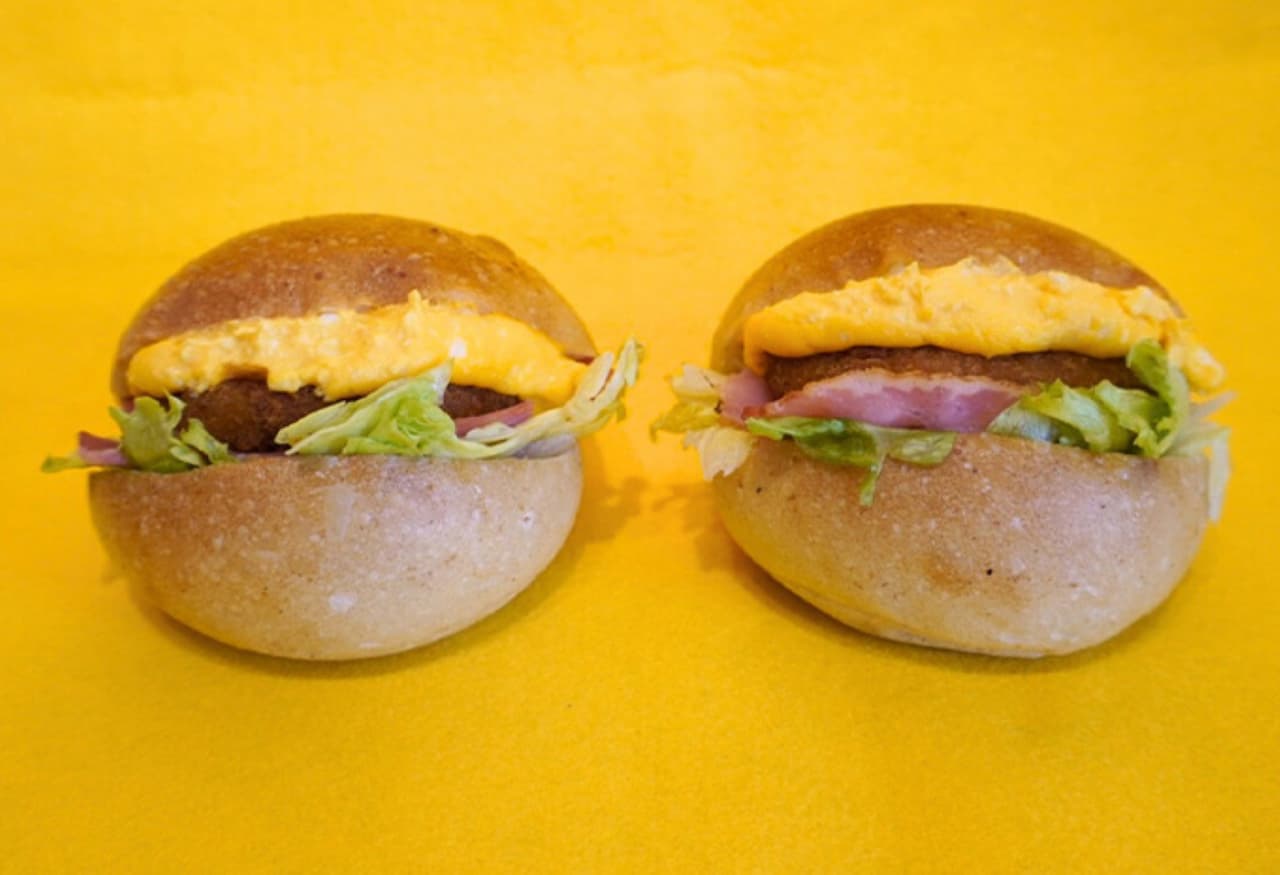 「淡路バーガー」は、淡路島産のタマネギソテー、コロッケ、丹波の卵を使ったソースを挟み、ボリューミーに。“毎日食べても飽きないパン”を目指し、国産小麦の旨みを活かした生地と、兵庫・神戸の食材を使用した味わいあるパンがそろいます。
