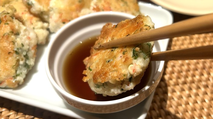 カニカマと粉末出汁で、旨味たっぷり。はんぺんが入っているので、食感がふわふわで良い。そしてまた、少しポン酢をつけると味わいが変わって、これまた美味しい。