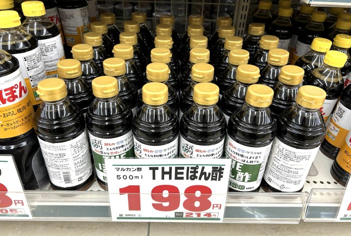 総菜に限らず、エバグリーンオリジナルの商品も多い。中でも記者は、調味料系がアリだなと思っている。例えばポン酢(214円)など、気持ちお手頃価格であるし味も良い。