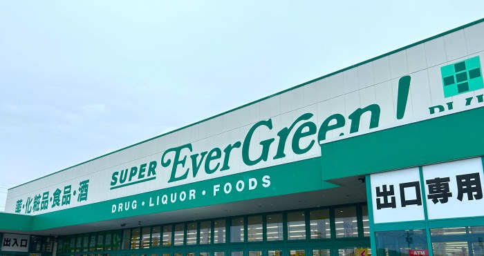 スーパーだけでなくドラッグストア「エバグリーン」や飲食事業なども手掛けており、精力的な会社という印象だ。ちなみに、スーパーエバグリーンには「スーパーエバグリーンプラス」も存在する。