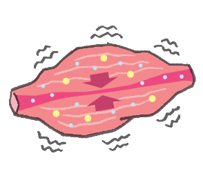 運動不足で使われなくなった筋肉は、伸縮性が悪くなりカチカチに。周囲を走っている血管を圧迫するようになり、血行が悪化。