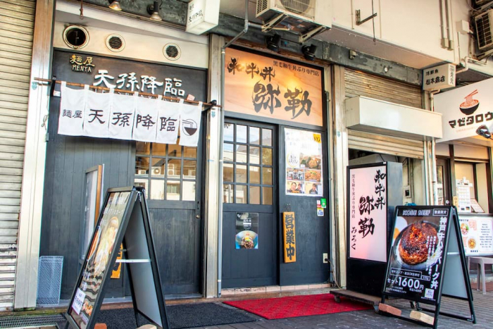 お店があるのは、系列店『麺屋 天孫降臨(てんそんこうりん)三宮店』のすぐ隣。元町の焼肉店『和牛焼肉 369(みろく)』を母体に展開する丼専門店だからこそ、上質な黒毛和牛をリーズナブルに味わえるのが魅力です。