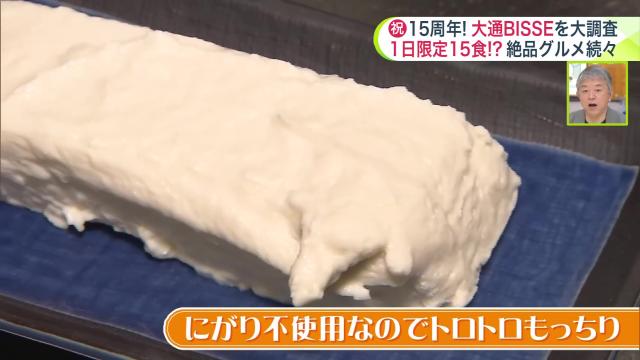もっちり食感の秘密は、にがりを使わない独自の製法によるもの。