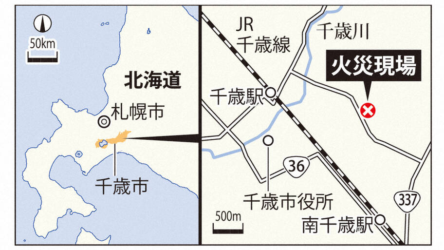 火災は発生から約3時間20分後の午後10時ごろに消し止められたが、木造2階建ての母屋と隣接する同平屋建ての離れの2棟延べ約350平方メートルが全焼し、軽トラックや軽貨物車なども焼けた。