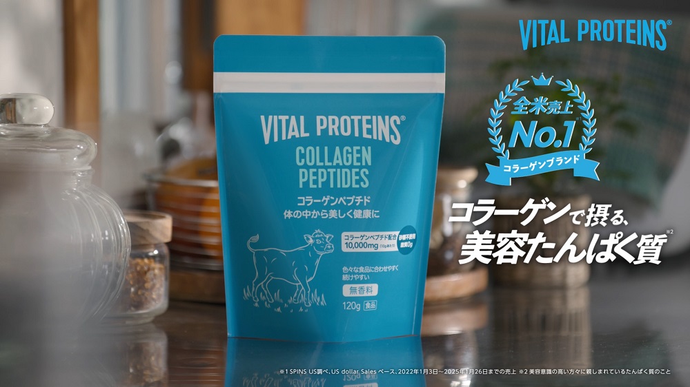 ネスレ日本株式会社 ネスレ ヘルスサイエンス カンパニーが展開する、アメリカ売上No.1※1のコラーゲンブランド『VITAL PROTEINS(以下、バイタルプロテインズ)』は、体内で吸収されやすいコラーゲンペプチドを100%使用し、無香料・砂糖不使用。飲み物や料理にさっと溶け、味や香りも邪魔しにくく毎日の食事に取り入れやすい商品となっている。
