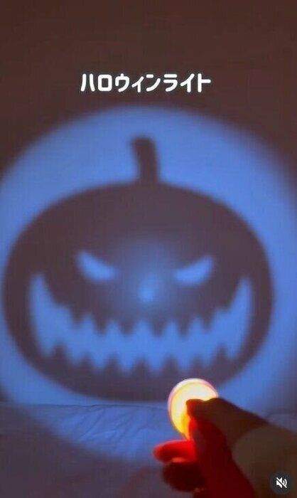 子どもはライトや懐中電灯が大好き!はなさんがセリアで購入したのは「ハロウィンライト」です。スイッチを入れるとハロウィンのモチーフが浮き出てきます。取り替え式で3種類のモチーフを楽しめますよ♪ ライトを近づけたり遠ざけたりしてモチーフの大きさの変化を楽しんだり、「光」のおもしろさを感じながら遊ぶことができます!