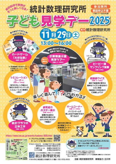 ぜひお友達やご家族とご来場ください。引用元:『統計数理研究所』公式HP( https://www.ism.ac.jp/events/kodomo/2025.html )