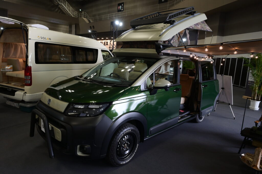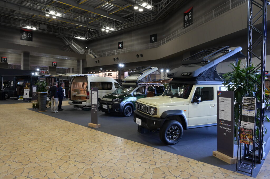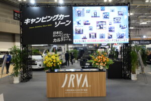 各メーカーの次世代モビリティが並ぶなか、異彩を放っていたのが「キャンピングカーゾーン by JRVA」。