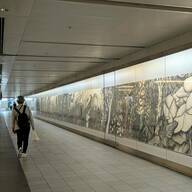 陶芸家・安永正臣氏のモザイク壁画が飾られたエントランス。
