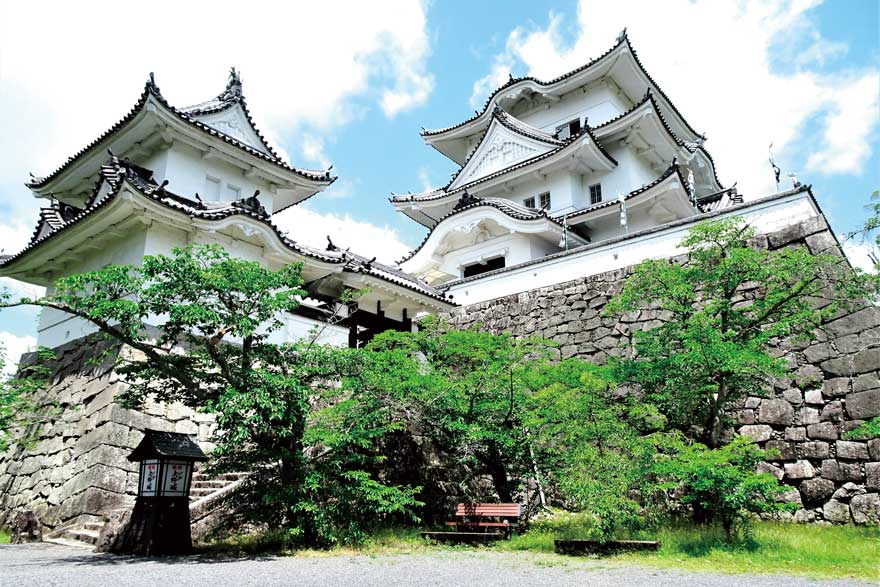 築城の名手・藤堂高虎が築いた高さ日本有数の石垣を誇る名城。白亜の木造天守は昭和初期に復興され、「白鳳城」の雅名を持つ。天守からは城下町や伊賀忍者の里を見渡す絶景が広がります。