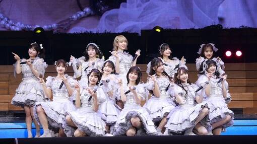 「私が小さなUFOに乗って、宇宙から地球に降り立った時の曲。いろんな思い出が詰まったこの曲を。」とデビュー時のMVの話を経て披露されたのは、安田のデビュー曲「Best of my Love」。日が昇り、夜が明けていく壮大な映像演出が、「夜」「朝焼け」といった歌詞とリンクし、普段のライブ以上に楽曲の魅力と想いが伝わるパフォーマンスで本編を締めくくった。