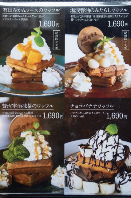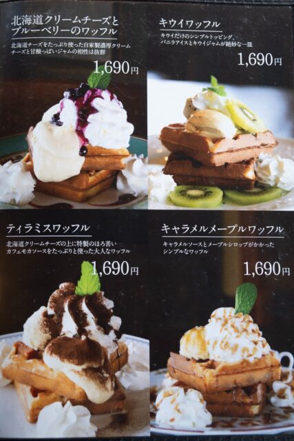 どれにしようか悩んでしまうほどワッフルメニューが充実。