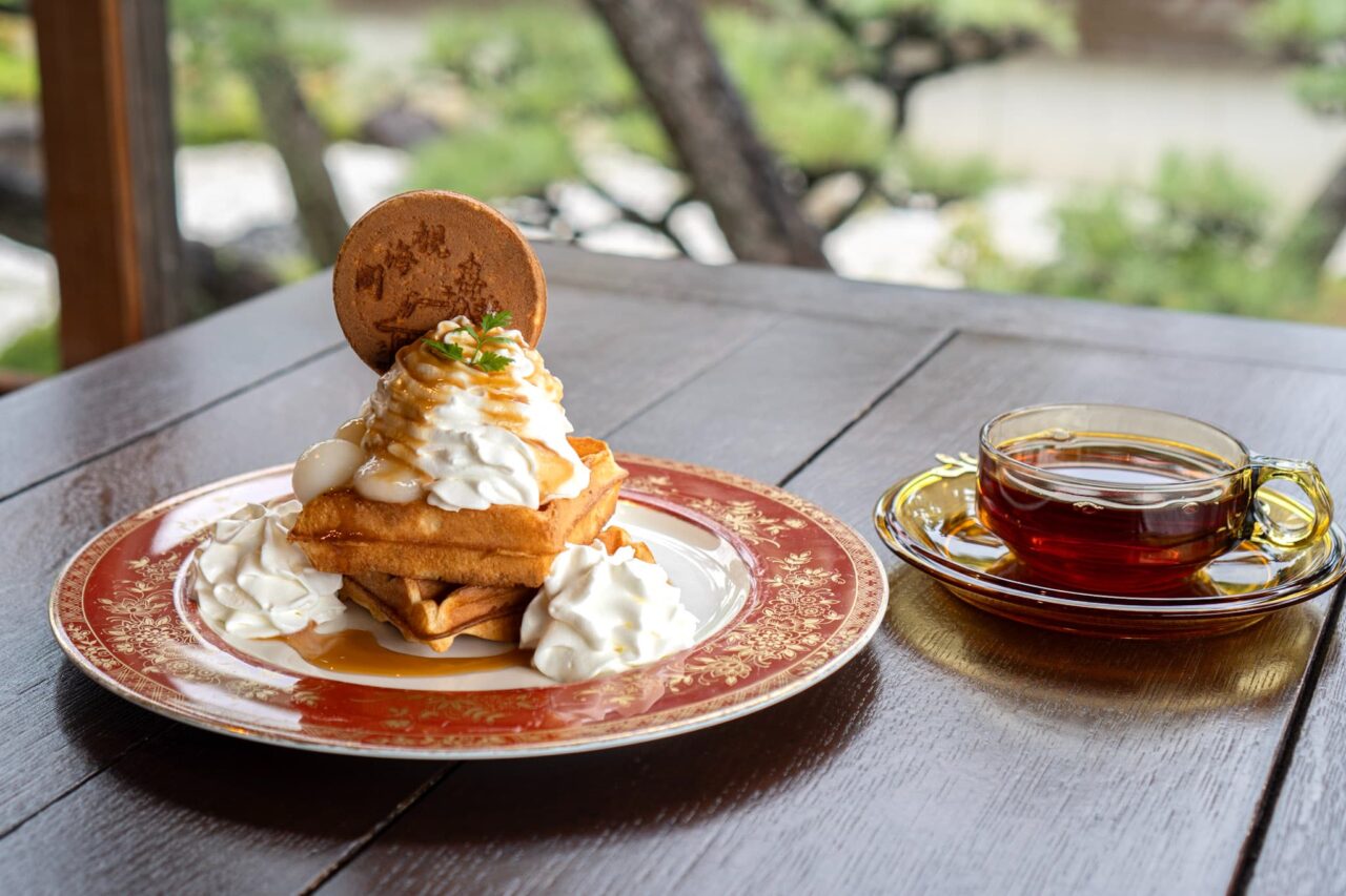 歴史的価値がある古民家という抜群のロケーションで、こだわりのワッフルを味わう。非日常の中でゆったりとした時の流れを噛みしめて。