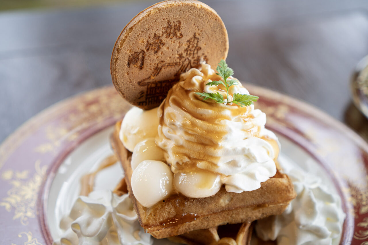 ワッフルの生地に使われる卵や小麦粉、バターなど、使用する食材には一切妥協がありません。作り置きはせず、直前にメレンゲを合わせることでサクサク食感のワッフルが楽しめます。名前の通り、湯浅醤油を使ったみたらしソースは深みのある味わいで、生クリームやワッフルと相性抜群。