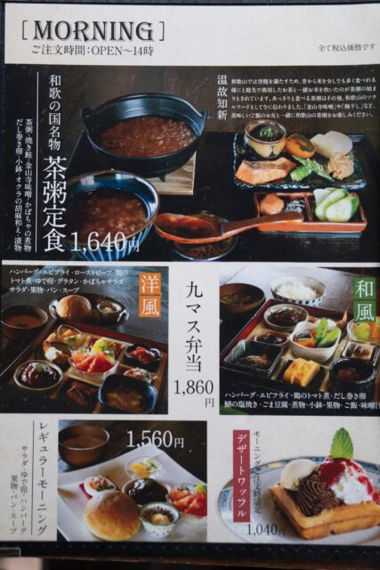14時までは和歌山名物の茶粥が味わえる定食など、モーニングもいただけます。